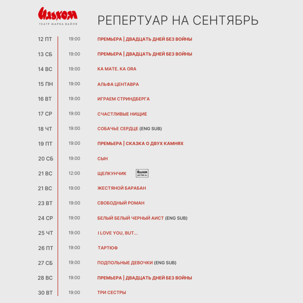 Друзья, 12 и 13 сентября вас ждёт премьера спектакля режиссёра Александра Плотникова «Двадцать дней без войны» — при поддержке «ProLogisticServices».