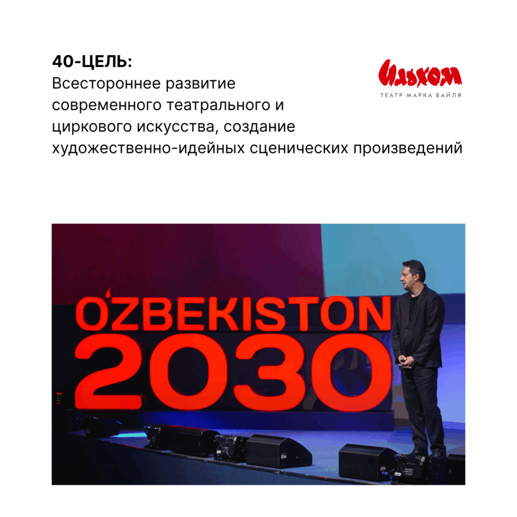 Наша задача — всесторонне развивать современное театральное и цирковое искусство, создавая художественно-идейные сценические произведения в рамках Стратегии «Узбекистан-2030» (40-я цель)