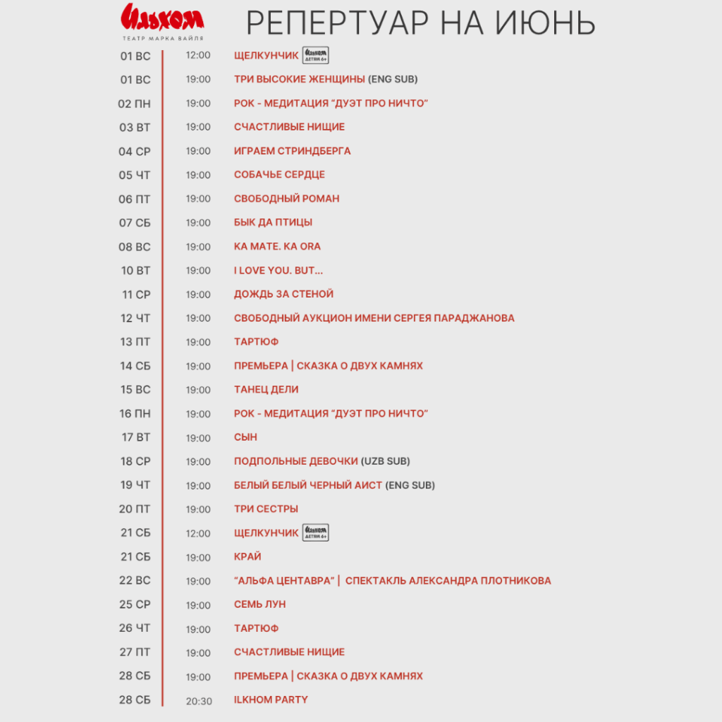 Репертуарный план на июнь!